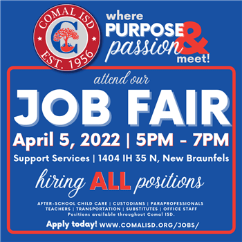Comal ISD Hosting Job Fair Tuesday April 5.